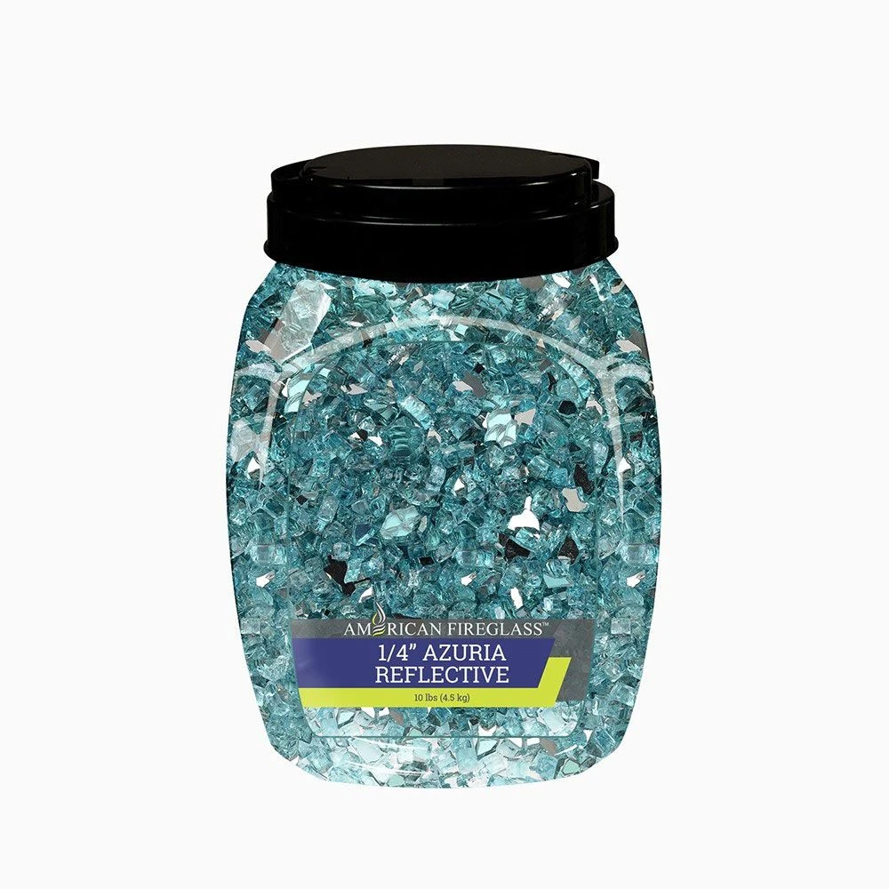 American Fire Glass 1/4-Inch Premium Fire Glass, 10-Pounds, Azuria Reflective offers a contemporary fire media option to accent your gas fire pit or fireplace. Surround your fire with this magnificent blue to brighten any room with cool radiance, or accentuate the natural light of an outdoor patio. Reflective fire glass adds an extra dimension of style with its shimmering appearance. All of our American Fire Glass products are made from glass that’s been manufactured to guarantee no dangerous edges. What’s more, all fire glass products have been quality inspected by highly trained professionals to ensure performance, elegance, and 100% customer satisfaction.