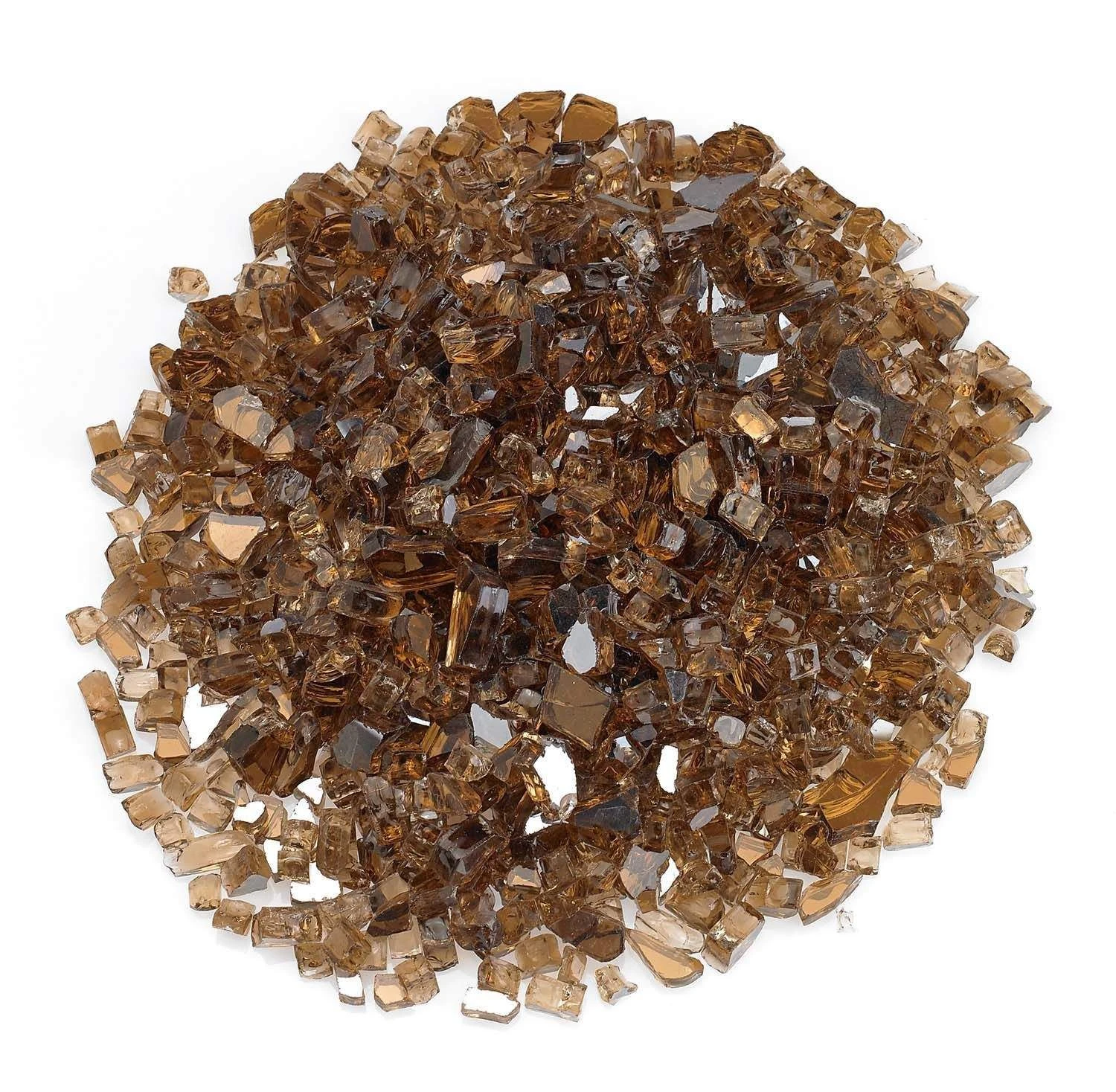 American Fire Glass 1/4-Inch Premium Fire Glass, 10-Pounds, Copper Reflective offers a contemporary fire media option to accent your gas fire pit or fireplace. This rustic copper tone adds warmth and complements many color schemes. Spread holiday cheer quickly when used around the holiday season. Reflective fire glass adds an extra dimension of style with its shimmering appearance. All of our American Fire Glass products are made from glass that’s been manufactured to guarantee no dangerous edges. What’s more, all fire glass products have been quality inspected by highly trained professionals to ensure performance, elegance, and 100% customer satisfaction.