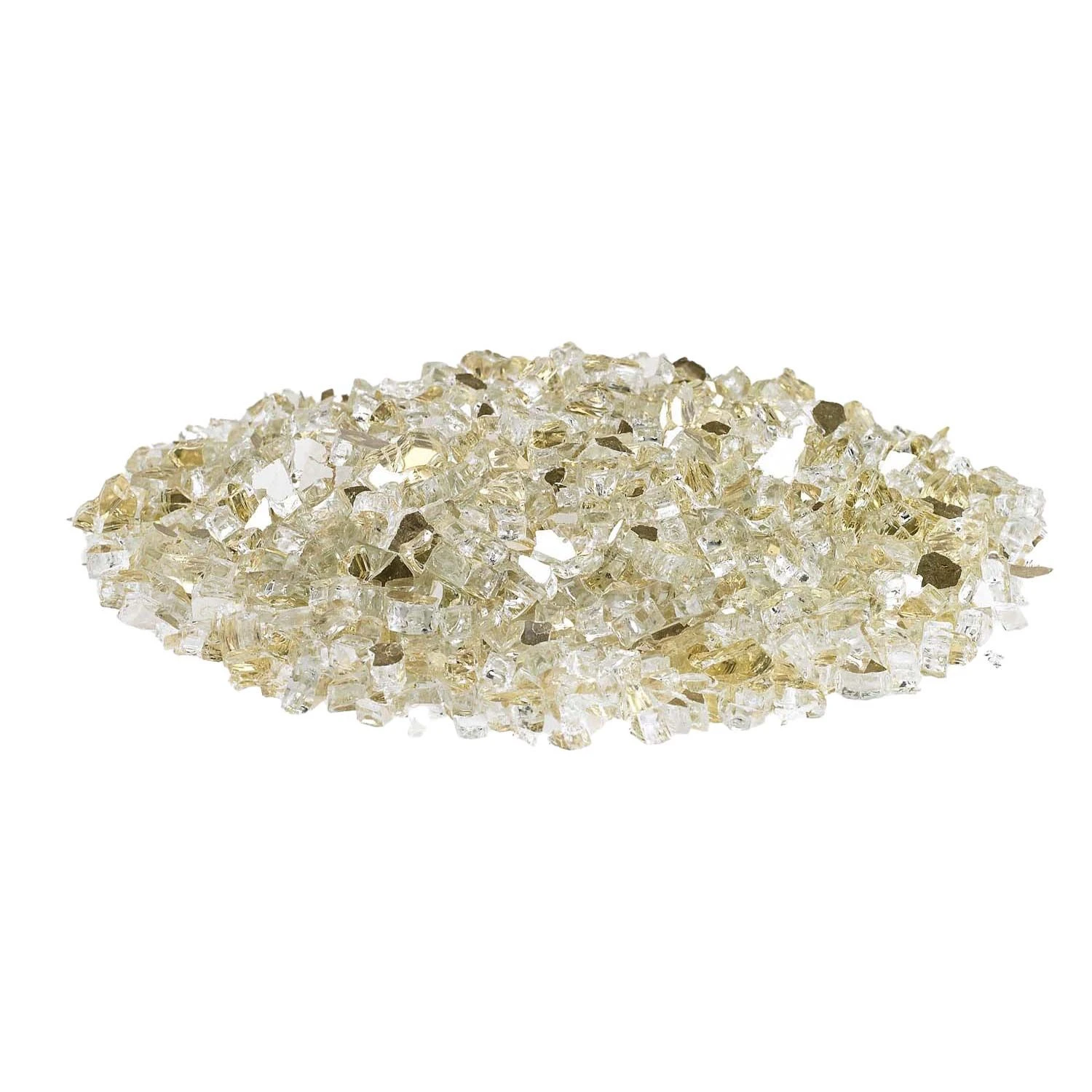 American Fire Glass 1/4-Inch Premium Fire Glass, 10-Pounds, Gold Reflective offers a contemporary fire media option to accent your gas fire pit or fireplace. The rich tones of these glass crystals will add a warm elegance to any room or patio. Reflective fire glass adds an extra dimension of style with its shimmering appearance. All of our American Fire Glass products are made from glass that’s been manufactured to guarantee no dangerous edges. What’s more, all fire glass products have been quality inspected by highly trained professionals to ensure performance, elegance, and 100% customer satisfaction.
