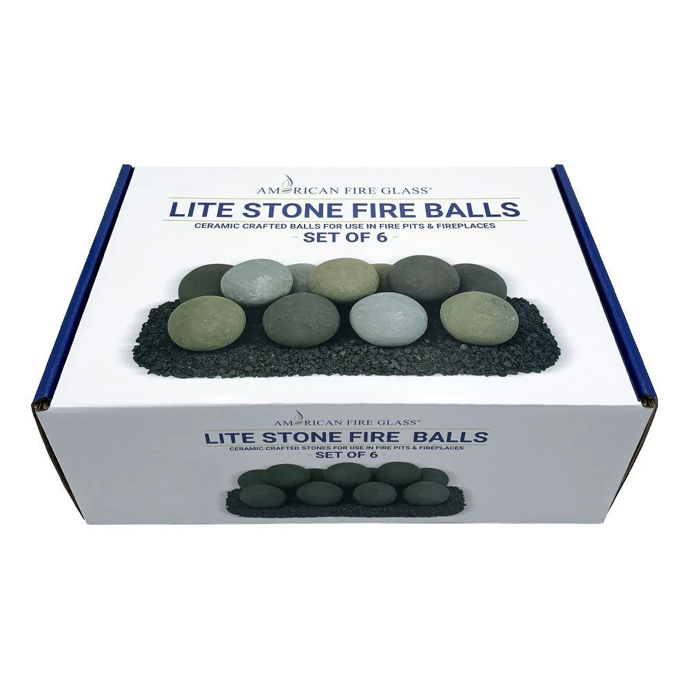 American Fire Glass Lite Stone Balls, 6 Stone Set provides a blend of modern and old world charm with minimalist design to create a neat uncluttered look to your gas fire pit or fireplace. Utilizing current ceramic technologies, these Lite Stone Balls are ideal for indoor and outdoor environments. Our Lite Stone Balls get their color from an environmentally friendly ceramic stain that is absorbed into the porous fireproof material. Extremely durable, our Lite Stone Balls are freeze tested and fire approved and they are clean burning with no smoke, ash, or harmful fumes. The Lite Stone Fire Ball sets are available in 4″ sets of 6 allowing you choose the quantity that best fits your fire feature and style.