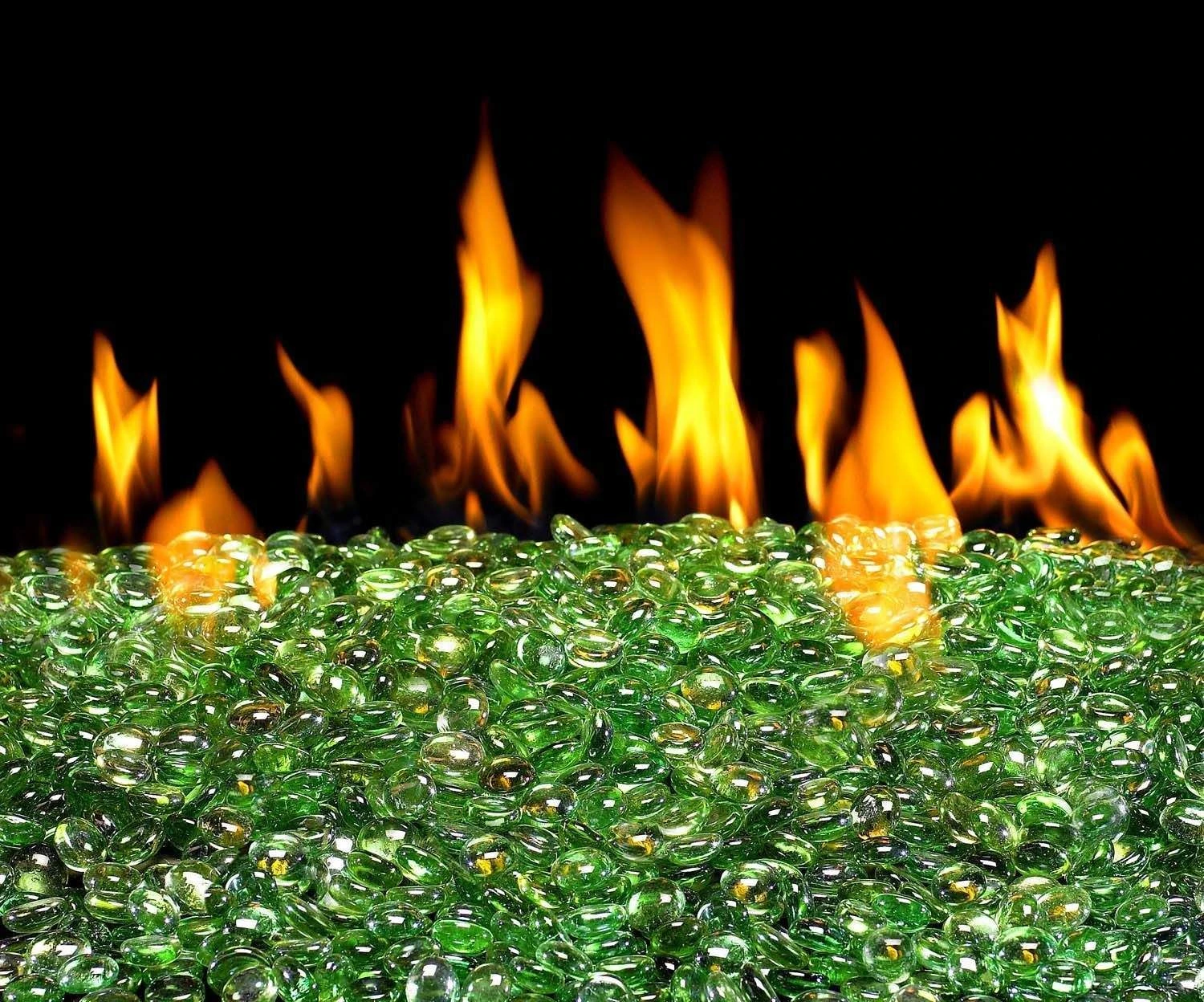 American Fyre Designs 10-Pound Fire Glass Gems, Emerald provide a high-end fire media with a uniform design. The smooth bead shaped 1/2″ glass gems are manufactured from a high quality tempered glass that are then tumbled to ensure a safe finish on all of the edges. The bright Emerald color offers an enhancing contrast to any fire feature for a unique look. Elevate the overall appeal of your fire feature when you choose to use these beautiful Emerald Fire Glass Gems from American Fyre Designs.