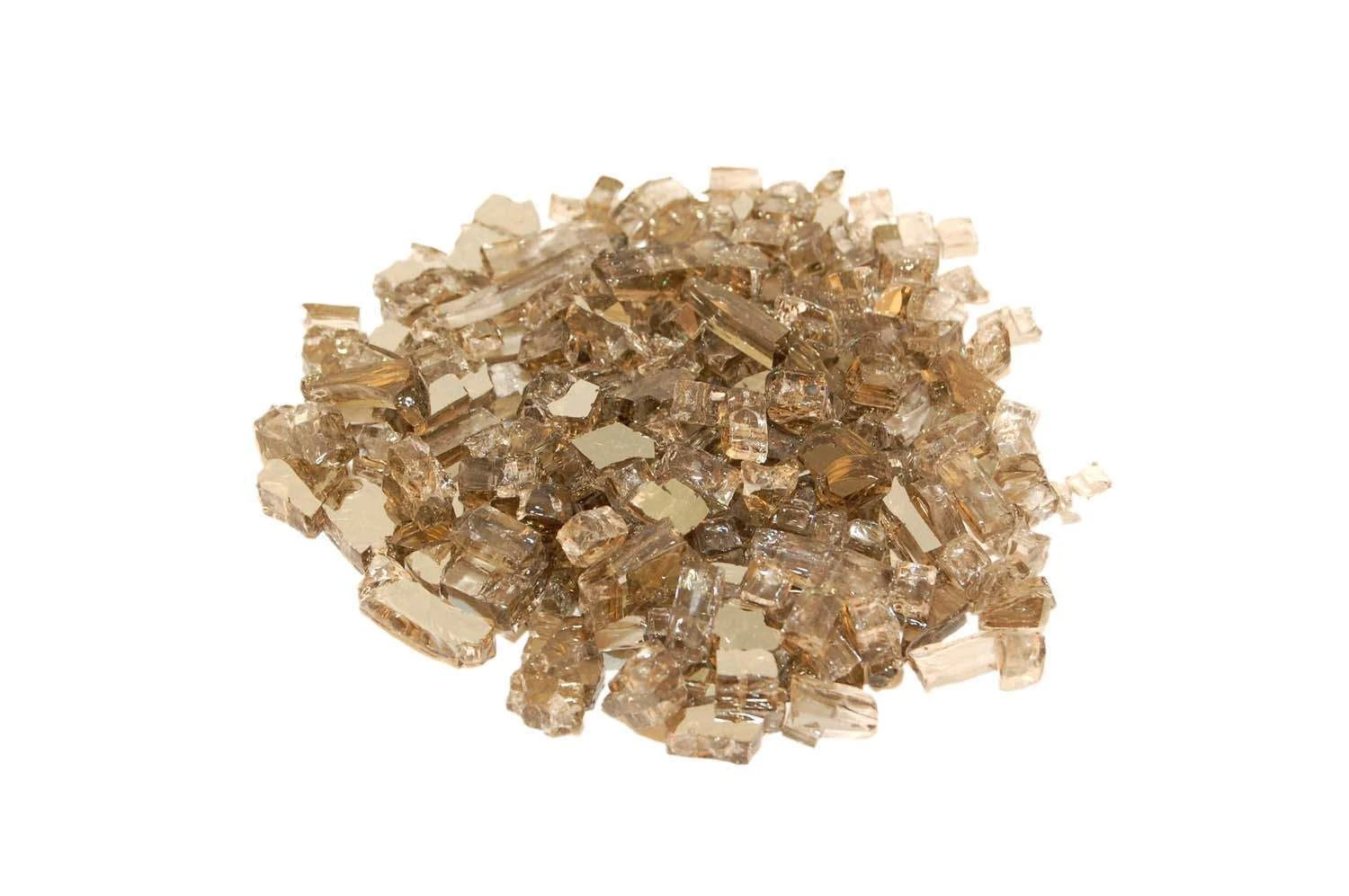 American Fyre Designs 10-Pound Premium Fire Glass, Bronze Reflective provides a high-end fire media with a reflective finish. The jagged and irregularly crushed 1/4″ glass crystals are manufactured from a high quality tempered glass and polished to provide a mirrored finish while the tumbled finish ensures a safe finish on all of the edges. The luxurious Bronze hue offers an enhancing contrast to any fire feature for a unique and modern look. Elevate the overall appeal of your fire feature when you choose to use these beautiful Bronze Reflective Fire Glass gems from American Fyre Designs.
