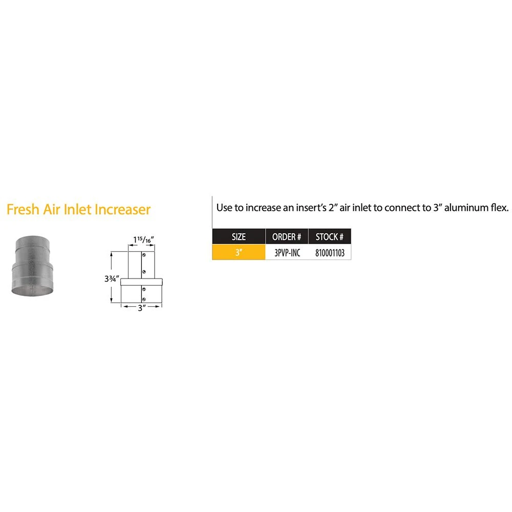 DuraVent 3PVP-INC PelletVent Pro Fresh Air Inlet Increaser used to increase an insert?s 2? air inlet to connect to 3? aluminum flex.