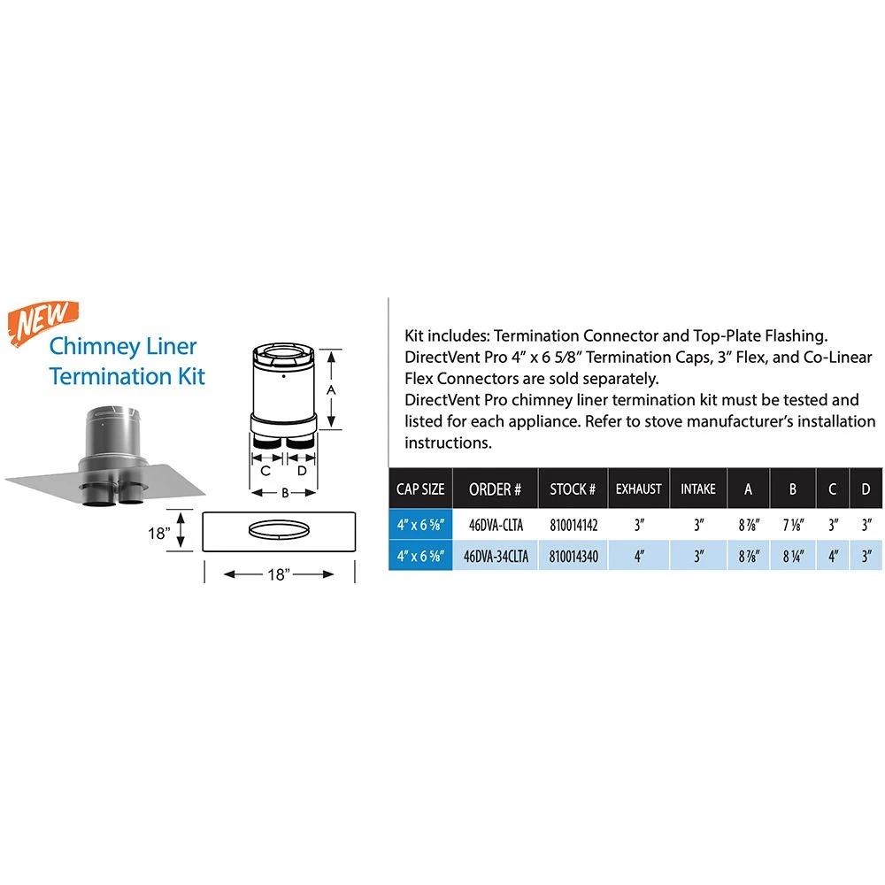 DuraVent 46DVA-xGLTA DirectVent Pro 4×6-5/8-Inch Diameter Co-Linear Termination Adapter provides a premium component for use in a DirectVent Pro system. This co-linear termination adapter is intended for use with standard and high-wind through-the-wall termination. Refer to installation instructions for restrictions and clearances.