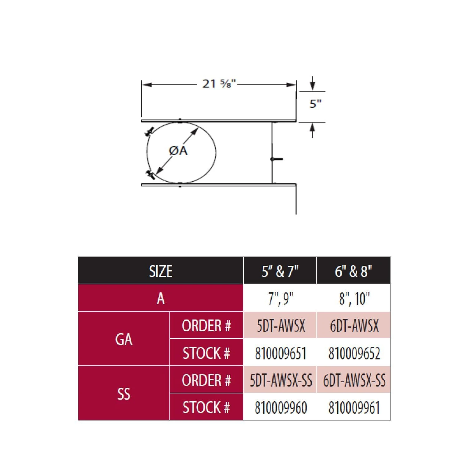 DuraVent 6DT-AWSXx DuraTech Adjustable Extended Wall Strap for 6 and 8-Inch Diameters provides a premium product for use with the DuraTech chimney system. These adjustable wall straps are used to add support for the chimney structure. These units ensure a wall clearance of at least 2 to 6 inches is met and are required for every 8 feet of chimney length. Available in both galvalume or stainless steel options, one part covers two diameters (5-inch diameter covers 7 and 9 inches, while 6-inch diameter covers 8 and 10 inches).