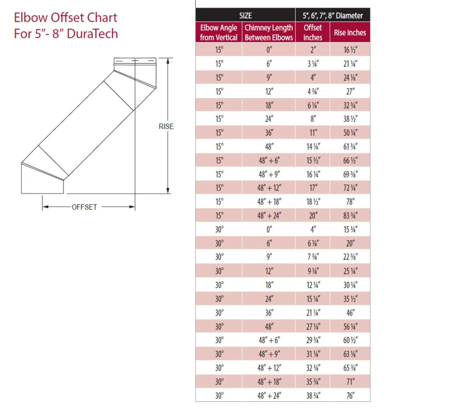 DuraVent 7DT-E30 DuraTech 7-Inch Diameter 30 Degree Elbow Kit provides a high quality kit for your DuraTech chimney system. The elbow kit includes (2) elbows and (1) elbow strap. Use for offsets around obstructions such as rafters, ridgepoles, or joists. May have two pairs of elbows, if needed. Offsets greater than 30° are not permitted in accordance with UL 103 standards. Elbows swivel 360° at base (angles are not adjustable). A pair of elbows is required to return an offset chimney back to vertical. Available in stainless steel or galvanized steel.