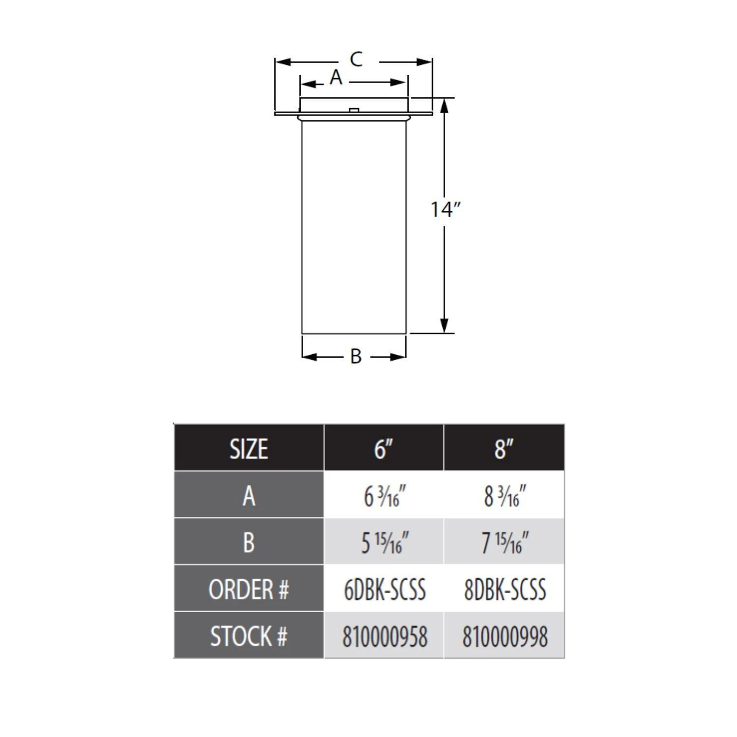 DuraVent DBK-SCSS DuraBlack Stainless Steel Slip Connector with Trim provides a premium product for use with the DuraBlack chimney system. This stainless steel component adapts DuraBlack pipe to a ceiling support box or finishing collar and adds 3 to 13 inches of length to rigid pipe. This component also allows for drip-free installation without cutting the pipe and can be used in line to create a telescoping combination when used with a straight length of pipe.