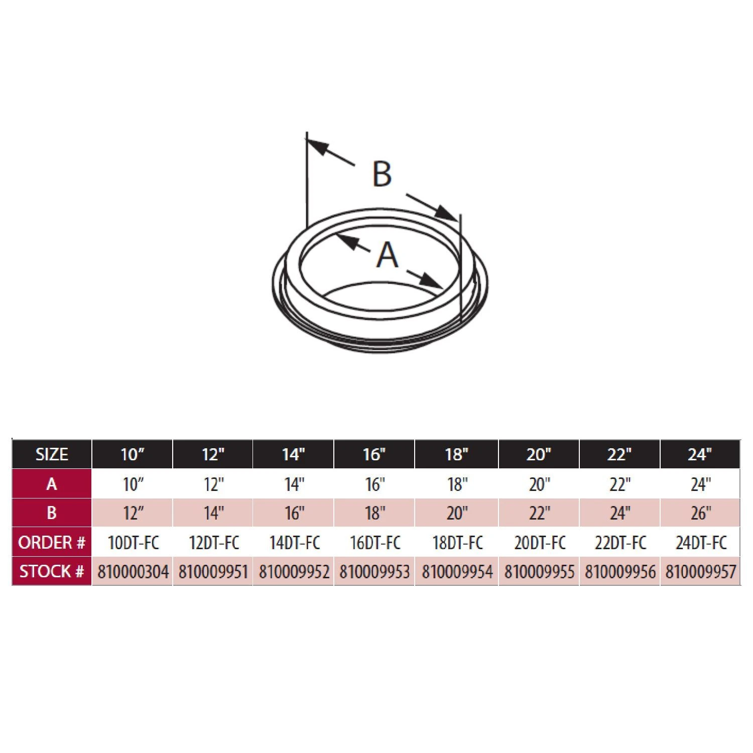 DuraVent DT-L-FC DuraTech Finishing Collar provides a premium product for use with the DuraTech chimney system. This component fits over the end of a chimney pipe to provide a decorative black finish and is used on chimney pipe suspended with the roof support system. This collar can also be used on pipe passing through a wall thimble.