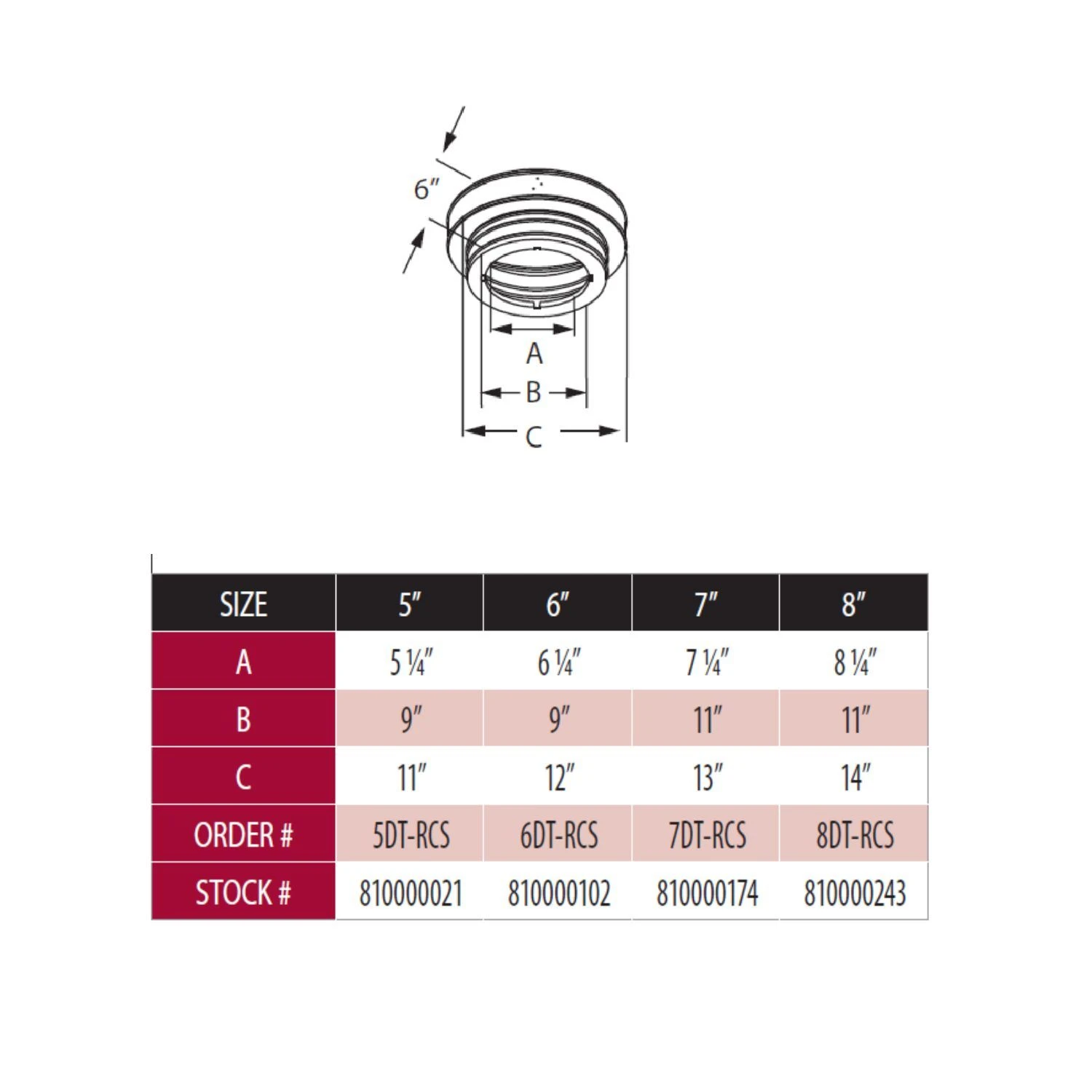 DuraVent DT-RCS DuraTech Round Ceiling Support Box provides a high quality black support box that supports up to 60 feet of DuraTech chimney. The Round Ceiling Support Box supports chimney pipe and provides a positive connection between the support box and chimney with a built-in twist-lock. Use an adapter to attach DVL or DuraBlack to the support box. Trim collars are sold separately.