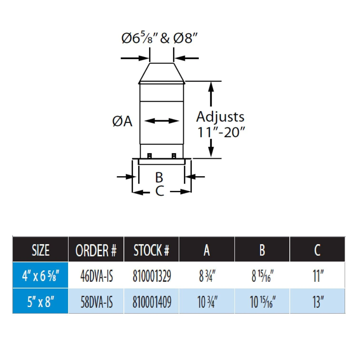 - Installation – Provides 1 inch of clearance to combustibles and includes a base with tube, extension tube, and collar