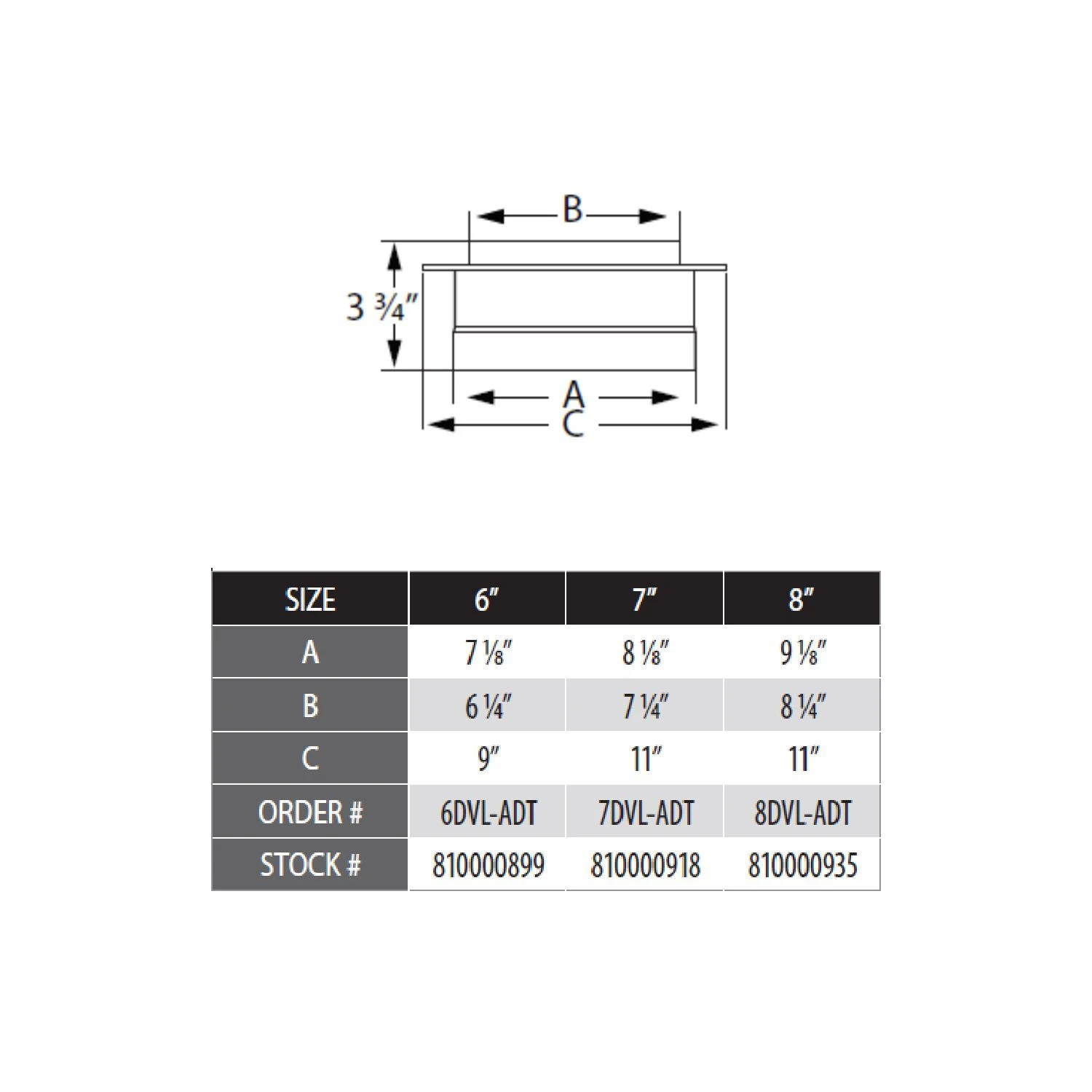 DuraVent DVL-ADT DVL Chimney Adapter with Trim provides a premium product for use with the DVL chimney system. This component is used to connect from a double-wall DVL to DuraTech, DuraPlus, DuraTech
