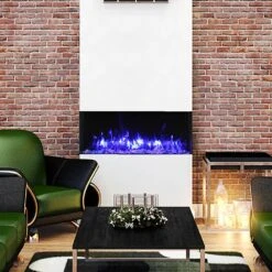 Remii BAY-SLIM Indoor/Outdoor Built-In 3-Sided Electric Fireplace With Decorative Media