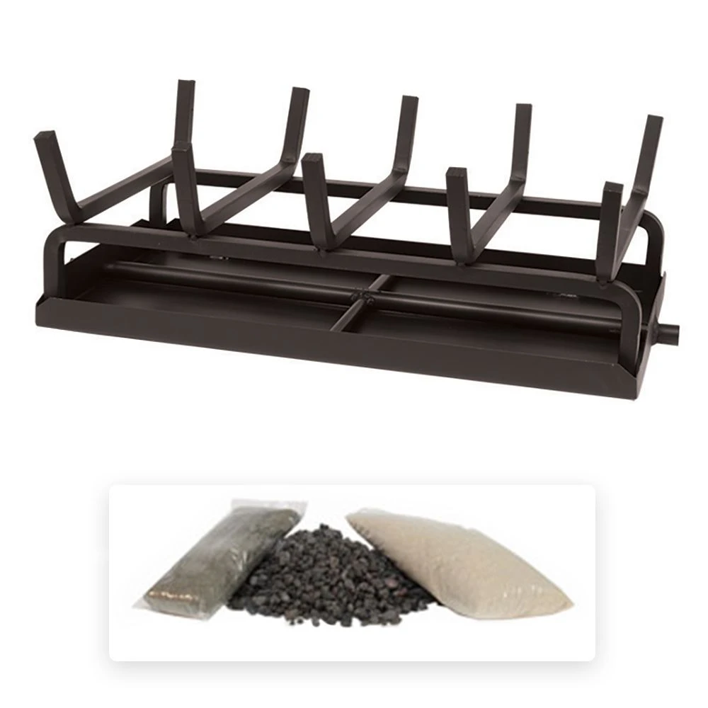- Includes – Complete set features see-through burner, log grate, sand, embers, and second front log