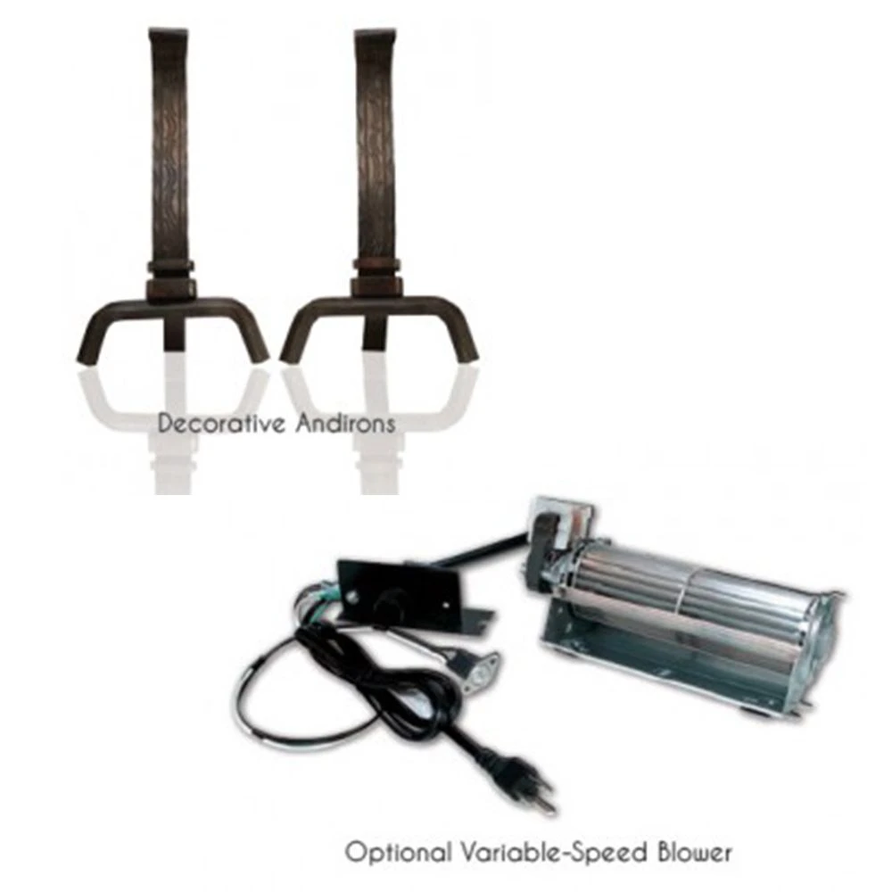 In addition to this fireplace’s customizable options, several premium add-on options are available to complete your installation. The Empire Auto Variable-Speed Twin Blower increases warm air circulation for greater thermal efficiency, while its remote control operation allows for precise control with six speed options. This fireplace can also be enhanced with decorative forged iron andirons to help create the appearance of a real wood fireplace.