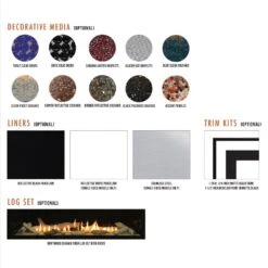 - Customizable fireplace liner and fire glass options allow for a personalized appearance.