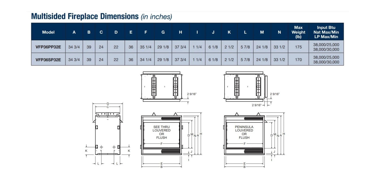 - Enjoy this fireplace from multiple angles with its three-sided peninsula design.