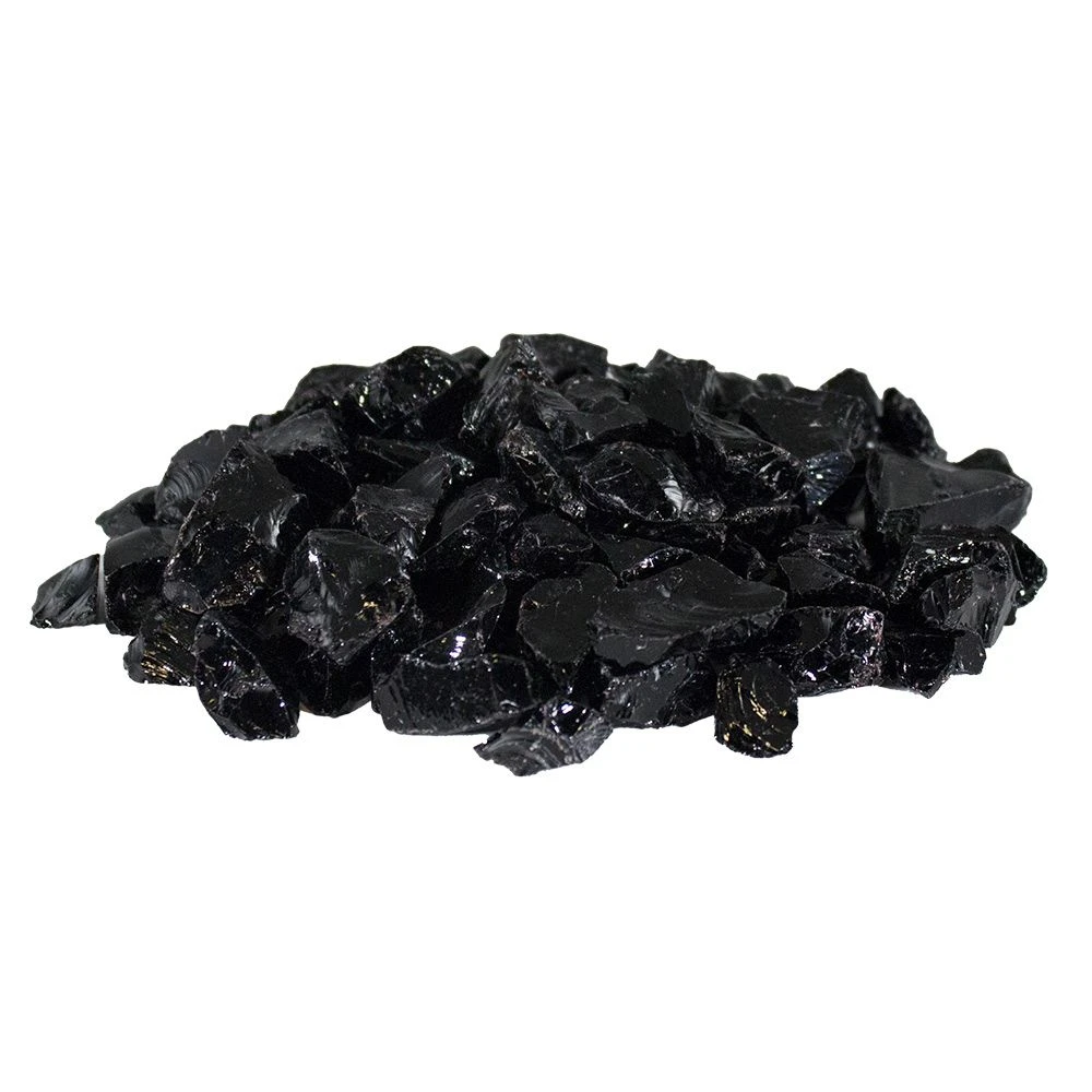 Firegear GL-BLACK-10 10-Pound Broken Fireglass, 1/2 to 3/4-Inch, Pepper offers a contemporary fire media option to accent your gas fire pit or fireplace. The high quality glass material has been heat treated to create a durable and heat-resistant product that is sure to stand up to the heat of your gas fire feature, while the pepper color offers a contrast to the flames. This 10-pound set of broken style fire glass has been tumbled to remove any sharp or dangerous edges while the round shapes create a contemporary appearance and range between 1/2-inch to 3/4-inch in thickness.