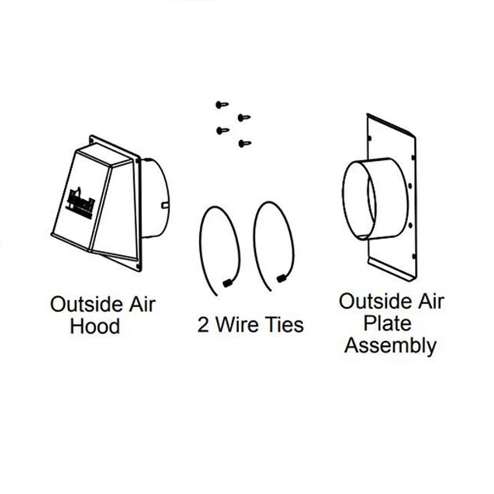 - Includes – Includes an outside air plate, wire ties, fastener pack, and an outside air hood