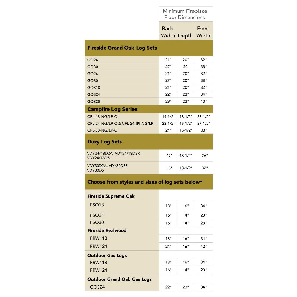 The Fireside Grand Oak Series is available in both two-tiered and three-tiered designs to easily fill larger fireplaces. In addition, this set comes in 18-inch, 24-inch, and 30-inch size options to match your space, while match light and intermittent pilot ignition options allow you to select the best option to meet your needs.