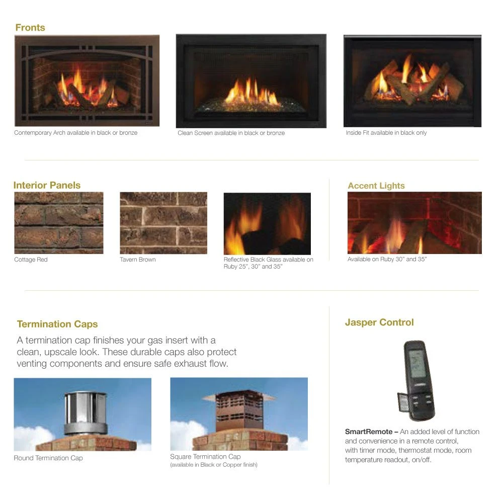 Majestic JASPER30IN Jasper 30-Inch Direct Vent Gas Insert provides a beautiful gas fireplace insert option for your old wood fireplace. Featuring a convenient design, a realistic appearance, and a variety of customizable options, this fireplace is sure to become the focal point in any space. Direct vent technology removes 100 percent of combustion exhaust and odor from your space, while a low-maintenance design offers an improvement over an old wood fireplace. The IntelliFire Touch intermittent-pilot ignition system on this unit allows for safe and simple operation, while compatibility with the IntelliFire App and included touchscreen remote control offer enhanced convenience.
