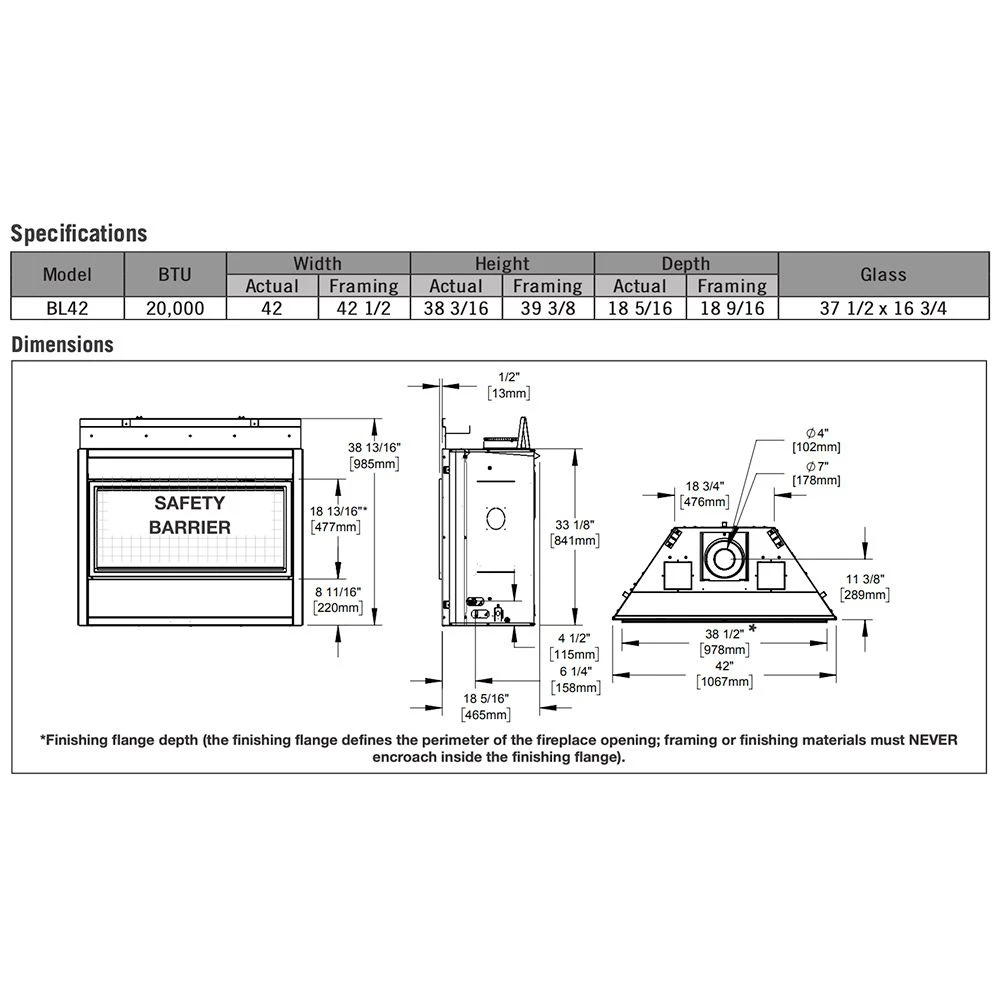 Napoleon BL42NTE Ascent Linear Series Electronic Ignition Direct Vent Gas Fireplace provides a premium gas fireplace for your living space. This unit provides a luxurious fireplace display through the use of Napoleon’s Divinity flame pattern for an impressive firebox display, while Crystaline topaz ember glass offers a contemporary flair. A clean face design ensures a full viewing angle and a uniform installation, while the included safety barrier allows for safe operation. With its non-combustible design, this unit can be mounted without the steel framing.