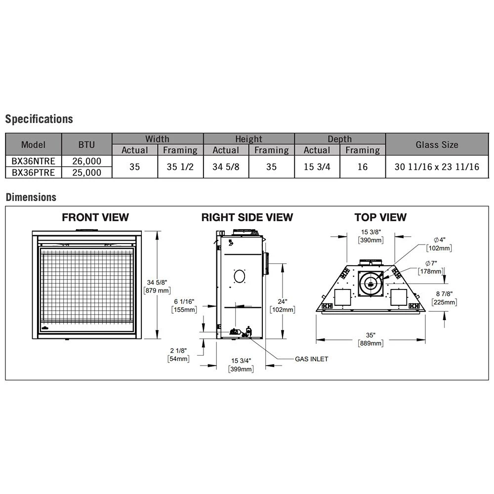 Napoleon BX36TRE Ascent X Series Electronic Ignition Direct Vent Gas Fireplace provides a premium gas fireplace option for your living space. This unit offers a luxurious fireplace display through the use of Napoleon’s advanced burner technology with an infrared ember bed for some of the most realistic flames in the industry. Impressive PHAZER logs offer a rich, detailed appearance designed to closely replicate the look of real wood logs, while a clean face design with no louvers offers a contemporary appearance. This fireplace features an electronic ignition gas valve with a backup control system to ensure reliable ignition at all times, even during power failures.