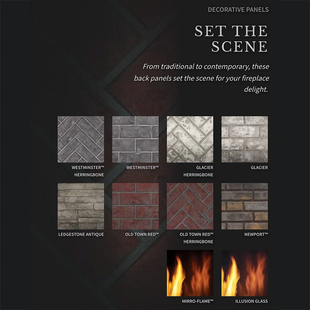 The Napoleon Elevation Series offers a variety of customizable options to meet the needs of your installation. Choose from panel options and options to personalize your fireplace to match your tastes. No matter your unique configuration, your fireplace will be sure to impress.