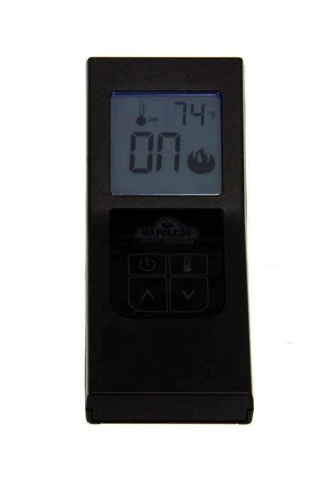 Napoleon F60 On/Off Fireplace Remote Control with Thermostat provides control of gas heating fireplaces with a simple click of a button. The remote control transmitter operates on (2) 1.5V AAA batteries that uses a 4 button Power, Thermo, Up, Down function which transmits wirelessly to a battery powered receiver and allows thermostatic control of your fireplace – just set the desired temperature and let your remote do the rest. The receiver operates on (4) AA batteries and connects to all standard millivolt valves. Enjoy the ambience of a cozy fire without sacrificing the comfort of your seat using this fireplace remote control from Napoleon–a leader in the hearth industry.