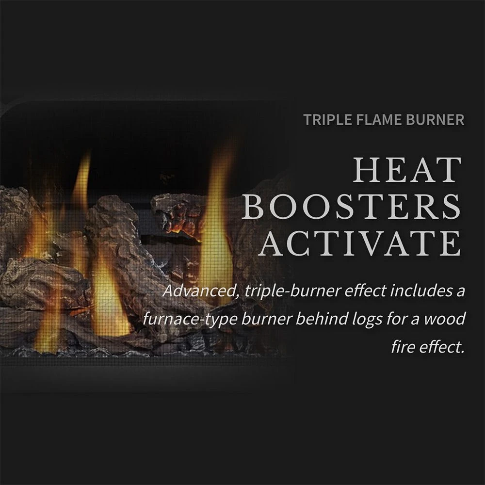 - 44,000 BTU burner with unique design features a varied flame pattern for a realistic look