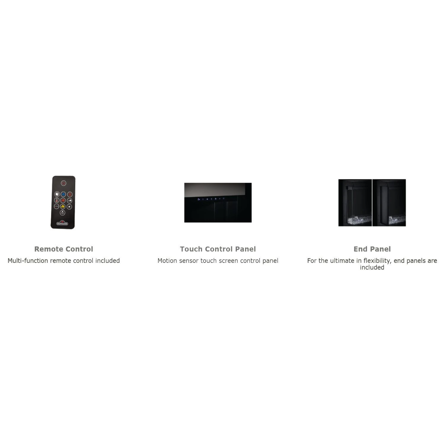 Napoleon NEFBxx-3SV Trivista Primis 3-Sided Electric Fireplace provides a beautiful built-in fireplace option to enhance your favorite indoor living space. This fireplace features the highest heat output in its category at 10,000 BTUs. The included end panels allow you to enjoy this 3-sided fireplace as a 2-sided or 1-sided fireplace depending on installation location. The fireplace comes with Northern Woods log set and acrylic crystals – choose to use one or combine them both for an amazing and unique display. Easily control the many features using the remote control or the touch screen panel with motion proximity sensor.