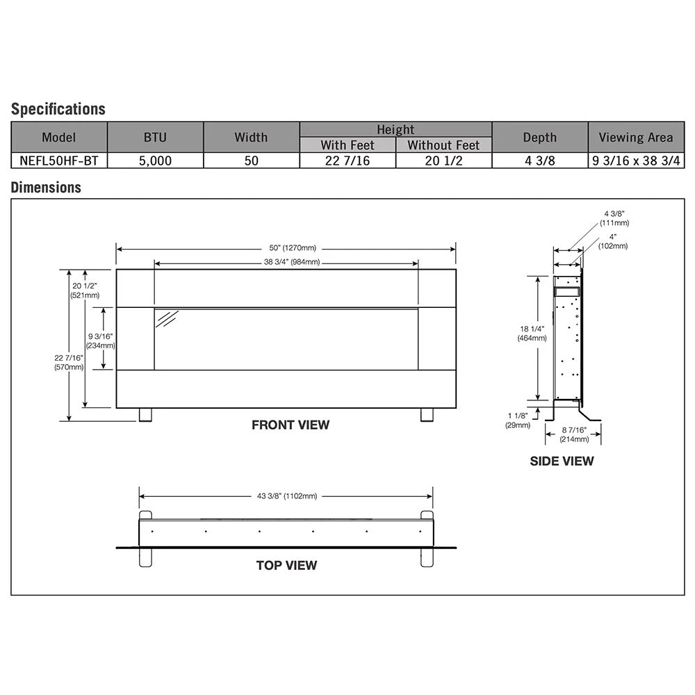 Napoleon NEFL50HF-BT Harsten 50-Inch Wall Mount or Standalone Electric Fireplace with Bluetooth Speakers provides a beautiful wall mount, built-in, or standalone fireplace option to enhance your favorite indoor living space. This unit features integrated speakers that can be controlled via Bluetooth to play music or ambient sound for a relaxing atmosphere. The slim 5 inch depth design allows for wall mounted, partially recessed, or standalone installation for a contemporary finish. The crystal clear cube ember bed accents the modern flame appearance while the high power LED lights enhance the flames both day or night with various color options to customize your fireplace appearance.