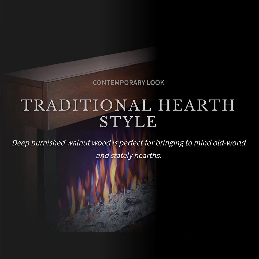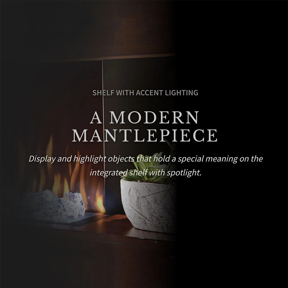 - Beautiful 53-Inch contemporary designed wood surround includes shelf with accent light