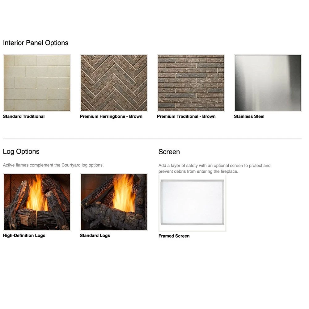 | Panels | Brown Traditional Refractory, Brown Herringbone Refractory, Grey Traditional Refractory, Traditional Stacked Concrete Refractory, Grey Herringbone Refractory, Stainless Steel |