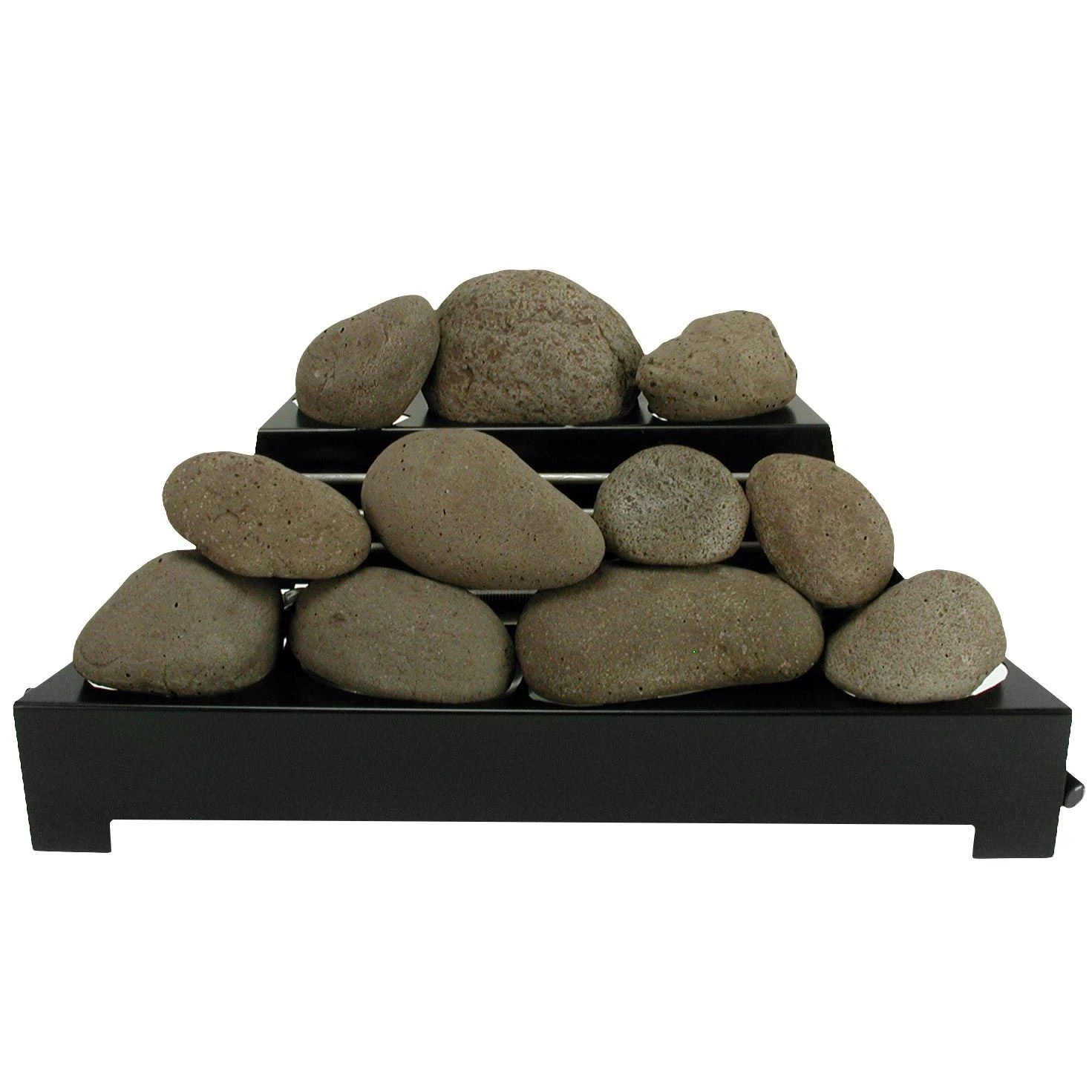 Rasmussen AFS24-B Alterna Ventless FireStones 24-Inch Burner Kit provides a premium vent-free burner kit option for your fireplace. Featuring heavy duty construction, this set has been built to withstand the rigors of regular use. The black chassis of this Alterna burner kit fades into the firebox, allowing the flame presentation and other firebox enhancements to be the primary focal point of your fireplace. The included FireStones offer a contemporary design with the same high-heat resistant, ceramic-bonded refractory material used in Rasmussen’s famous gas logs. Unlike real river stones, these ceramic stones will not explode or pop when placed in a fire. These FireStones also feature an environmentally-friendly stain finish designed to create a unique appearance that will remain beautiful for many years.