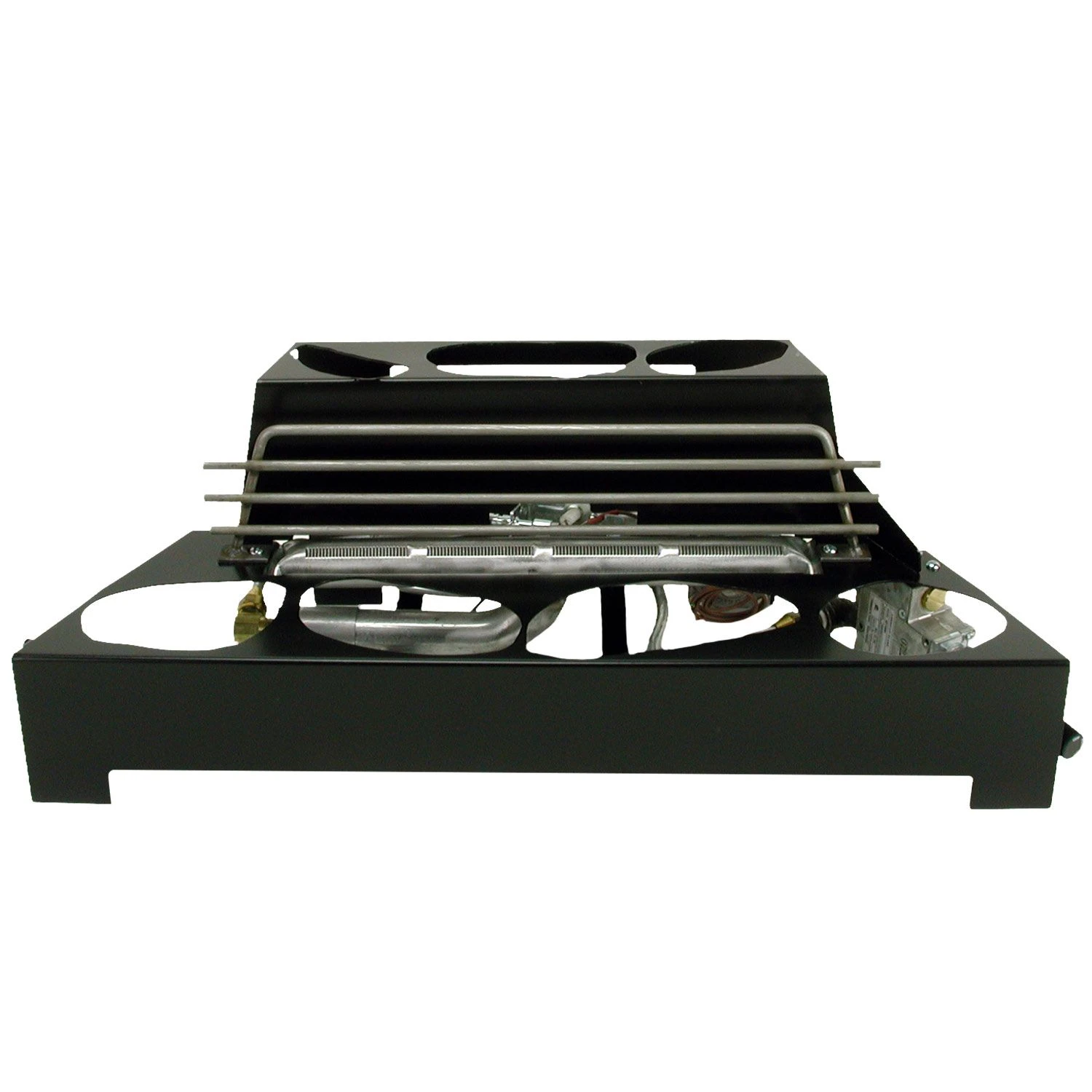 - Black Chassis – Black burner system fades into fireplace to allow flames and FireStones to feature more prominently