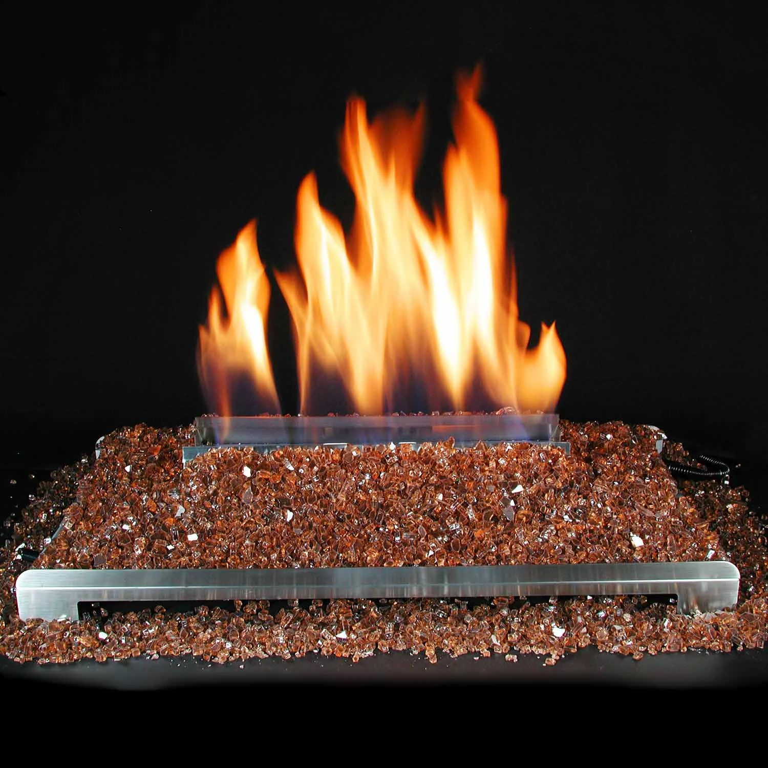 - Black Chassis – Black burner system fades into fireplace to allow flames and FireGlitter to feature more prominently