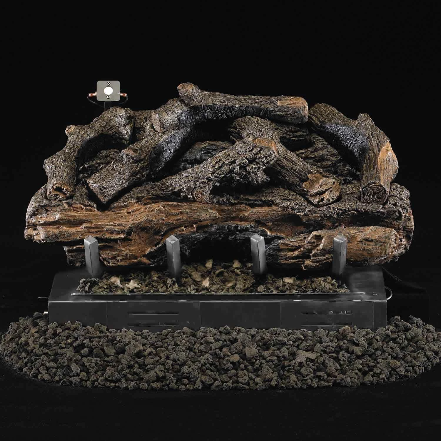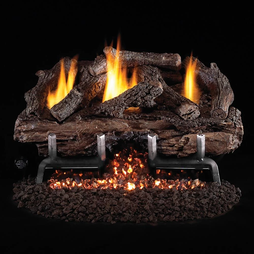 Real Fyre CHAS Charred Aged Split Ventless Gas Log Set, Stainless Steel, ANSI Certified provides a high-end gas log set to enhance your favorite living space with the warmth and comfort of fire. This vent-free unit is designed to turn your wood burning fireplace into an efficient and warm gas log set and it’s intended to be used in an approved masonry or approved ventless firebox enclosure – the stainless steel burner construction allows this unit to be used outdoors. This unvented system features an Oxygen Depletion Sensor (ODS) to monitor the amount of oxygen available in the room and automatically shut the burner system off before the oxygen drops below 18%. This unit features the option to choose between four different types: a manual valve, a remote control with on/off, a remote control with variable flame height adjustment, or a thermostat remote control with electronic spark to pilot control; if the electronic spark to pilot valve is not selected, the ODS pilot will be lit continuously to provide for the unit. The unique Charred Aged Split log design provides a realistic set of refractory ceramic gas logs that are designed to provide long term durability with a life-like appearance and the “split” appearance allows the logs to be reversible for a custom look.