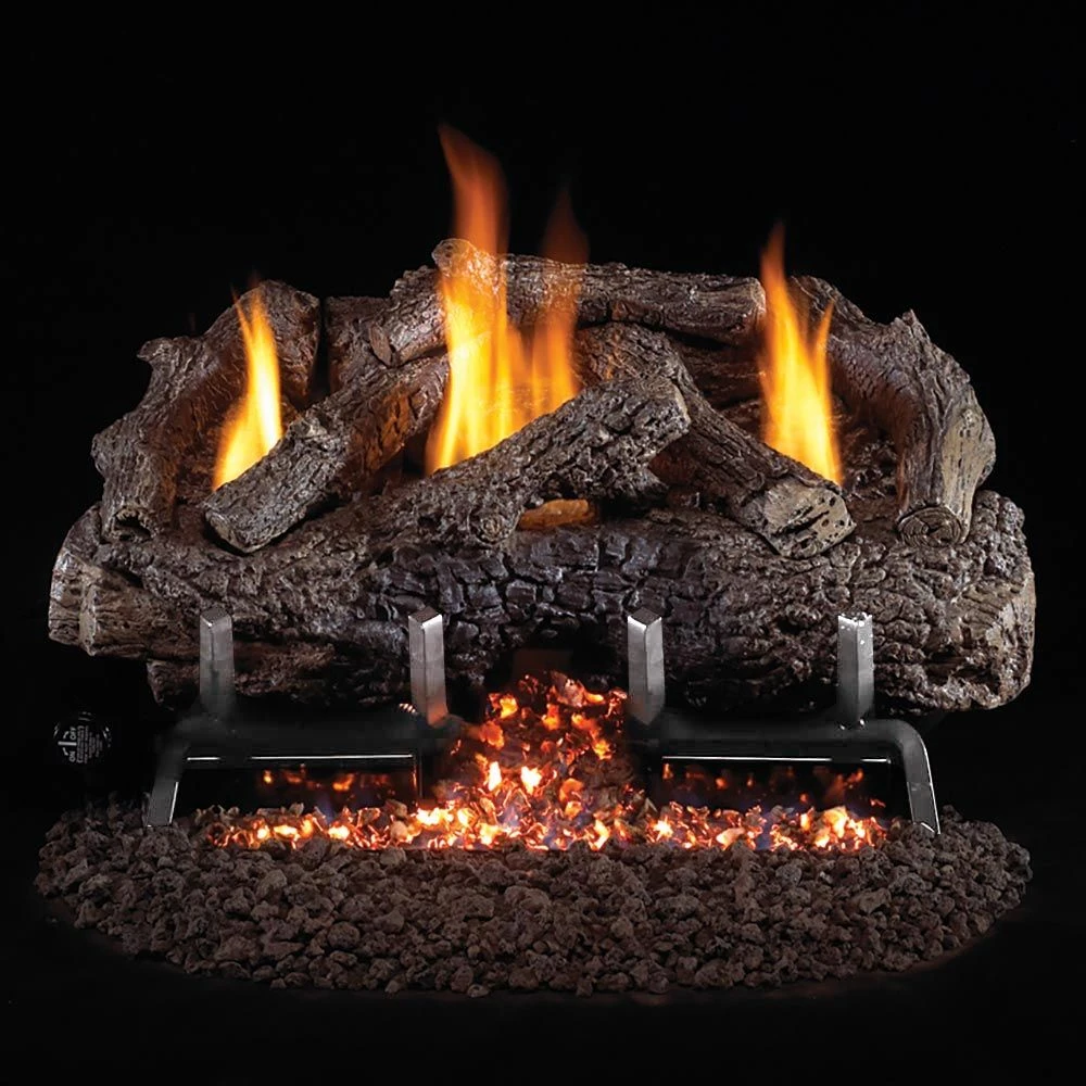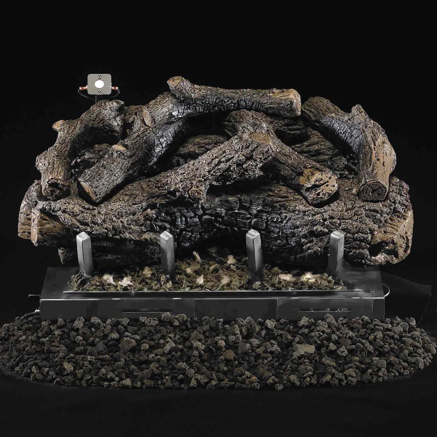 Real Fyre CHFR Charred Frontier Oak Ventless Gas Log Set, Stainless Steel ANSI Certified provides a high-end gas log set to enhance your favorite living space with the warmth and comfort of fire. This vent-free unit is designed to turn your wood burning fireplace into an efficient and warm gas log set and it’s intended to be used in an approved masonry or approved ventless firebox enclosure – the stainless steel burner construction allows this unit to be used outdoors. This unvented system features an Oxygen Depletion Sensor (ODS) to monitor the amount of oxygen available in the room and automatically shut the burner system off before the oxygen drops below 18%. This unit features the option to choose between four different types: a manual valve, a remote control with on/off, a remote control with variable flame height adjustment, or a thermostat remote control with electronic spark to pilot control; if the electronic spark to pilot valve is not selected, the ODS pilot will be lit continuously to provide for the unit. The unique Charred Frontier Oak log design provides a realistic set of refractory ceramic gas logs that are designed to provide long term durability with a life-like appearance.
