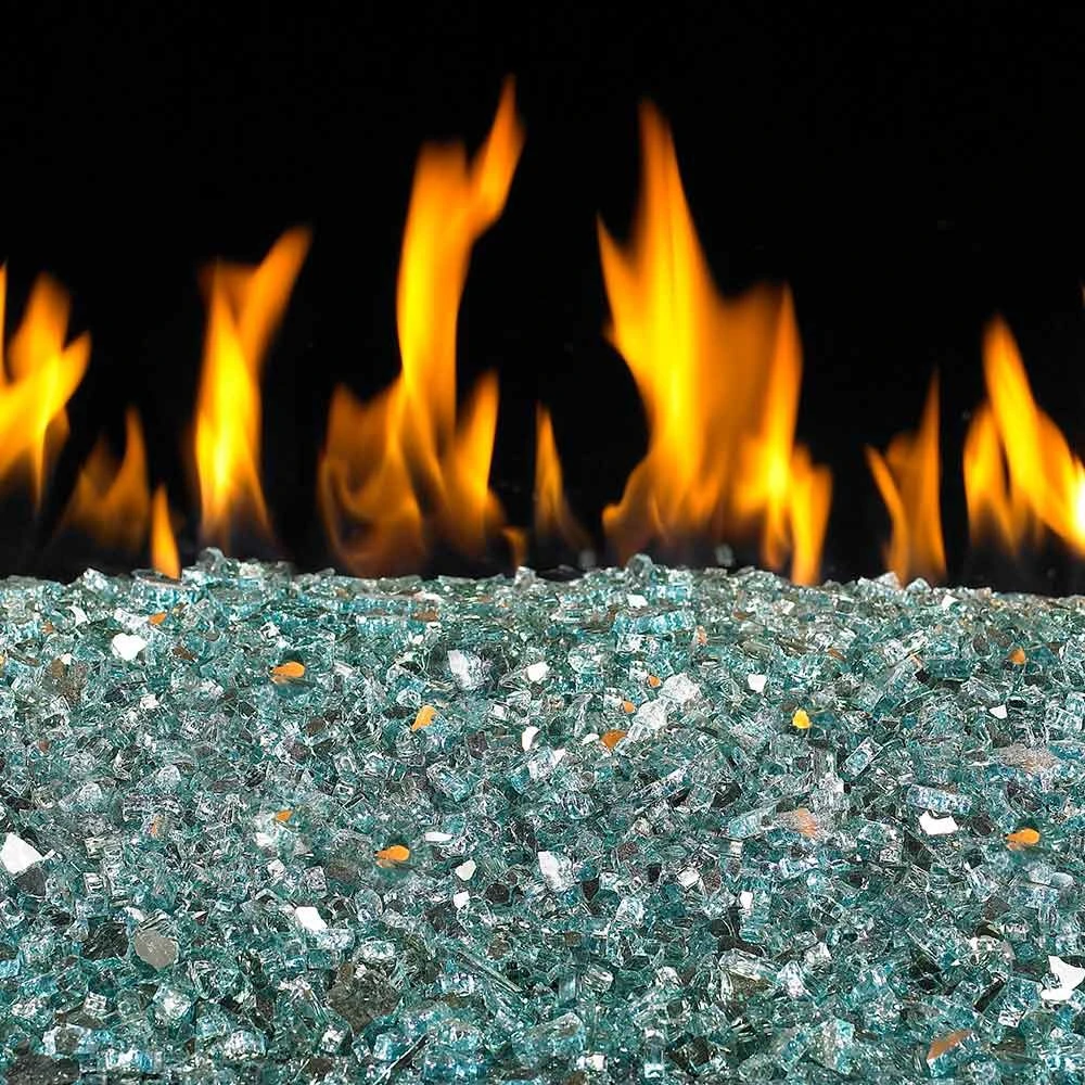 Real Fyre GL-10-FR Azuria Reflective Fire Glass, 10 Pounds provides a premium contemporary fire media alternative to enhance your perfect fire feature. Manufactured from high quality tempered, tumbled glass, the elegant Azuria Reflective crushed glass offers a beautiful blue accent that will bring more beauty and flame reflectivity to your perfect fireplace or fire pit.