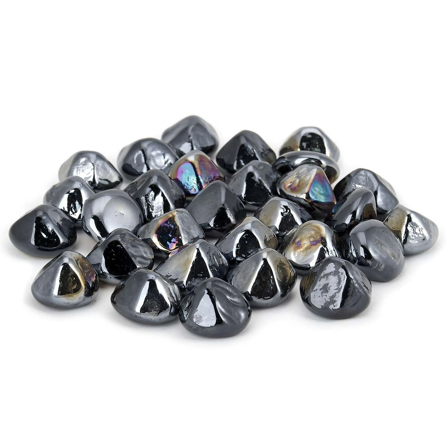 Real Fyre GLD-10-BL Black Luster Diamond Nuggets, 10 Pounds provides a premium contemporary fire media alternative to enhance your perfect fire feature. Manufactured from high quality tempered, tumbled glass, the elegant Black Luster Diamond Nuggets offer a beautiful modern accent that will bring more contrast and flame reflectivity to your perfect fireplace or fire pit.