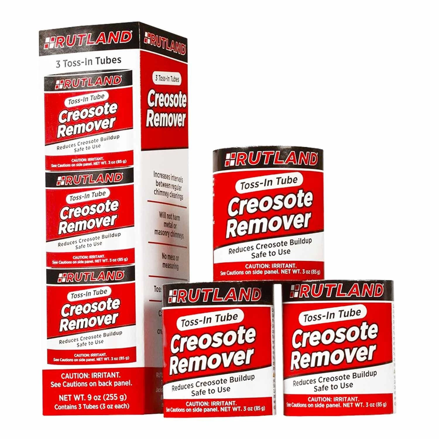 Rutland RD-97G Creosote Remover 3 oz Canisters, 3 Pack provides an efficient way to improve the condition of your wood burning appliance. This dry creosote remover effectively removes creosote buildup to allow for safer and more efficient operation of your fire feature. Simply add the pre-measured stick to your fire feature and allow the product to vaporize into the chimney to attack creosote deposits as they form. The resulting loose powder can easily be brushed away to keep your fire feature in top form. Use this product in wood stoves, fireplaces, and furnaces. This package includes three three-ounce canisters.
