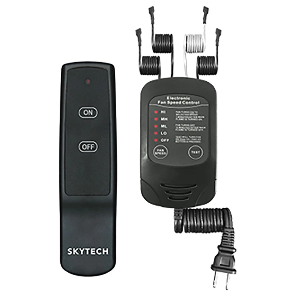 Skytech 1001-A-FSCRF On/Off Fireplace & Electronic Fan Speed Remote Control provides a premium remote control for your gas fireplace. Featuring basic ON/OFF control, this remote offers simple and reliable functionality. The included fan control automatically turns the fireplace fan on seven minutes after ignition and automatically turns the fireplace fan off 12 minutes after the fireplace turns off, while four fan speeds offer greater control of your unit. The receiver features a standard 110VAC plug, while the remote operates on one 12V battery. This receiver is compatible with millivolt fireplaces as well as most electronic ignition controls. Be sure to consult your fireplace or log set owner’s manual for more information.