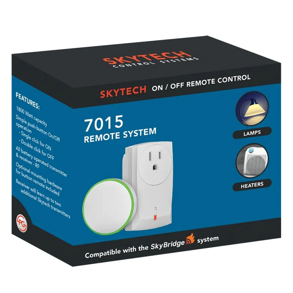 Skytech 7015 On/Off Electric Appliance Remote Control with Plug-In Receiver provides an all-new way to control your electronic devices. The SkyBridge system from Skytech offers a simple, elegant, and intuitive design with individual device control–directly from your smartphone. With custom schedules, customization options, and in-app tutorials, this system allows you to operate your fireplace with the utmost convenience.
