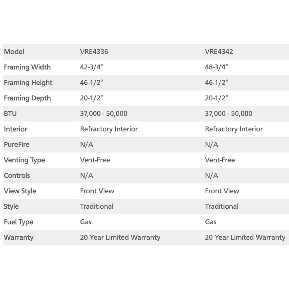 Superior 42-Inch Electronic Ignition Vent-Free Outdoor Gas Fireplace (VRE4342) provides a premium outdoor fireplace option for your home. This vent-free fireplace unit offers easy installation and requires no special chimney. With its detailed ceramic fiber logs, this unit offers a realistic appearance, while the battery-operated ignition offers added convenience. Heavy-duty stainless steel construction makes this unit strong enough for outdoor use, and optional accessories (sold separately) allow for versatile installation options.