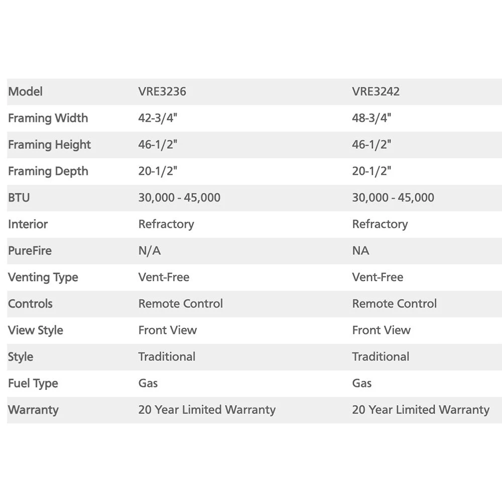 Superior 42-Inch Electronic Ignition Vent-Free Outdoor Gas Fireplace with Remote (VRE3242) provides a premium outdoor fireplace option for your home. This vent-free fireplace unit offers easy installation and requires no special chimney. With its detailed ceramic fiber logs, this unit offers a realistic appearance, while the battery-operated ignition and wireless remote control offer added convenience. Heavy-duty stainless steel construction makes this unit strong enough for outdoor use, and optional accessories (sold separately) allow for versatile installation options.