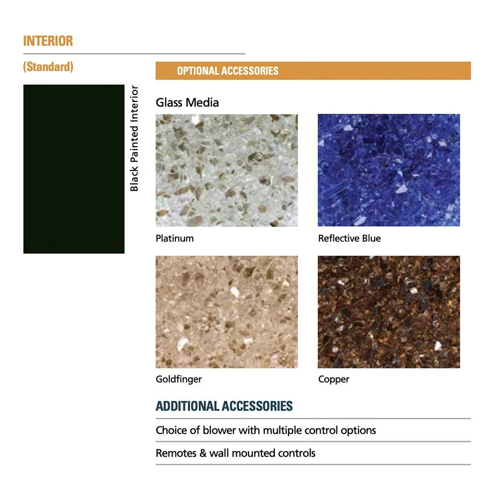- Contemporary Fire Glass – Unique reflective crushed black glass media offers a modern appearance