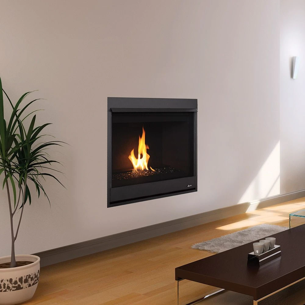 Superior DRC2033 33-Inch Electronic Ignition Direct Vent Gas Fireplace with Crushed Glass Media provides a compact contemporary gas vented fireplace for your space. Featuring a durable textured powder coat finish, this unit has been built to last. With its beautiful clean-face design, impressive appearance, and convenient features, this fireplace makes a great option for nearly any space. Premium fire glass offers a unique firebox appearance, while standard tempered glass and a protective screen offer unencumbered viewing. Electronic ignition with seamless battery backup provides reliable operation even in the event of a power outage, while efficient heating offers added coziness and lower operating costs. Additional optional accessories (sold separately) include a heat-circulating blower, remote controls, and wall switches.