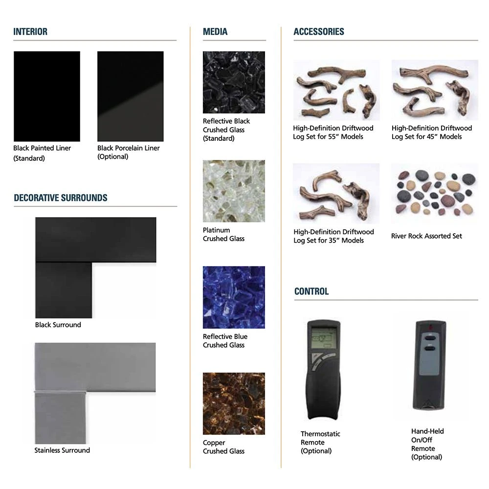 Superior DRL2045 45-Inch Electronic Ignition Direct Vent Gas Fireplace with Crushed Glass Media provides a beautiful contemporary gas vented fireplace for your space. This premium fireplace offers a combination of beauty and performance capable of making it the centerpiece of any space. Featuring a beautiful premium fire glass, a contemporary black painted interior, and a powerful burner system designed to produce tall, dancing flames, this breathtaking unit offers an impressive firebox. A clean-face design provides a seamless built-in look with integrated tile stops for easy finishing. An intermittent pilot ignition includes battery backup to provide continued operation in the event of a power outage, while additional optional accessories are sold separately to customize the appearance and use of your fireplace for additional ambiance and convenience as well.
