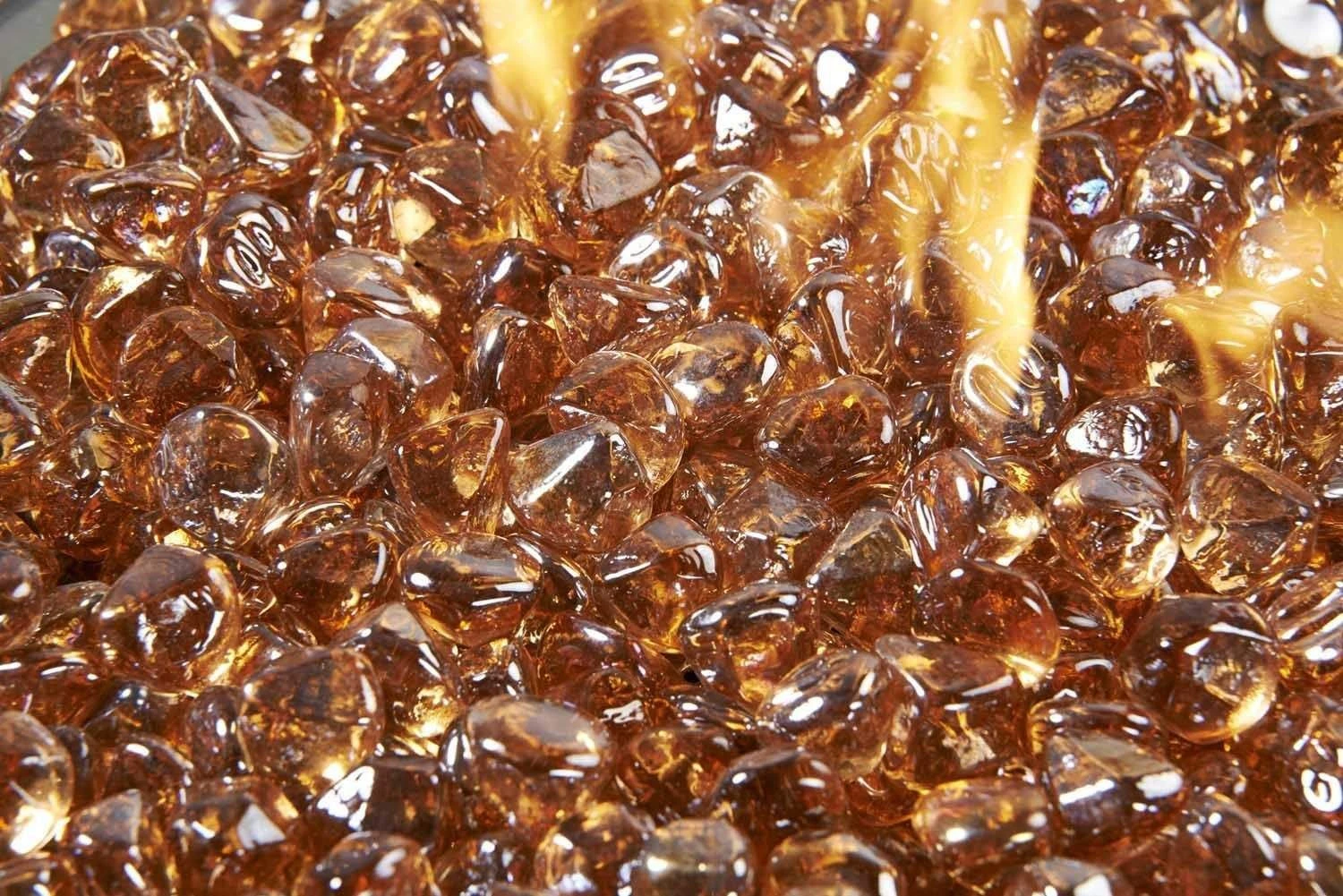 The Outdoor GreatRoom Company CFLD-C 5-Pound Fire Glass Diamonds, Large, Copper provide a beautiful fire glass option that will immediately elevate the beauty of your gas fire pit or fireplace. The dazzling Copper color will enhance the natural beauty of the fire and add an elegant flair to the traditional gas fire feature while the high quality tempered glass construction ensures a long lasting product that will not discolor. Upgrade your gas fire pit or fireplace with fire glass and use these radiant Large Copper Diamond gems from The Outdoor GreatRoom.